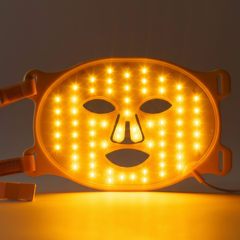 Gult ljus hjälper till att förbättra intrycket av glåmighet, ojämn hudton och synliga märken efter orenheter för en klarare hud med mer lyster.